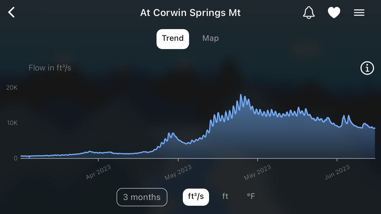 The Yellowstone has been cranking at or above 10,000 CFS since the end of April. As you can see above, we have had an pretty gradual run-off with the river peaking a little over 18,000 cfs at the end of May. It is still high, but the visibility is getting better everyday! After a completely GORGEOUS Spring, the last 2 weeks have been pretty cold and wet. The forecast for June 27-July 4 is looking ABSOLUTELY amazing. We should have warm days with afternoon showers to keep things green and cool. If you head out, make sure you bring a rain-jacket! We have been very pleased with the abundance of Yellowsallies, PMDs,and CAddis we have seen on the water as of late. This is the first full season after our historic flooding last June. If you are looking to get out on the water, give us a call!